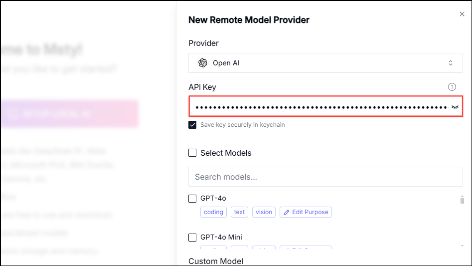 - Once you've added your API key to the Msty app, you don't need to add it again each time you want to use the app. Msty will save the encrypted key on your system, ensuring it is secure and convenient to use.