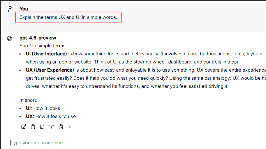 - Just type in your prompt in the text field and press Enter to get a response, as you normally would when interacting with ChatGPT or any other AI chatbot.