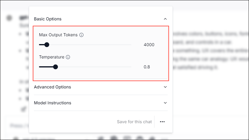 - This lets you change things like the maximum number of output tokens and the temperature for the AI model, among other things.
