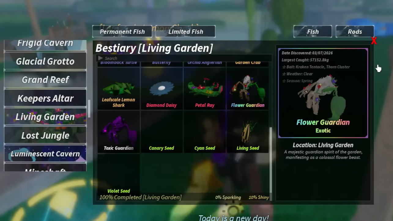 Verdant Oath Rod is a Lost Jungle rod in Fisch that sits inside the Living Garden, but you cannot buy it the moment you reach the area. The purchase is locked behind bestiary completion, and the rod is meant to be a late-stage unlock rather than a simple pickup.