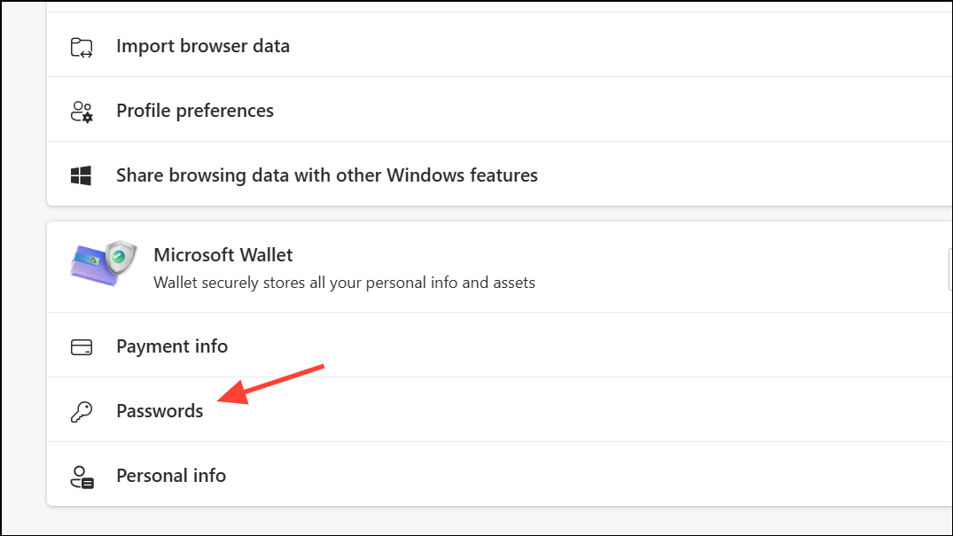 Step 2: In the Settings search bar, type Passwords and select See your saved passwords on other devices. This section displays credentials synced with your Microsoft account, especially if you use Edge or have enabled password sync.