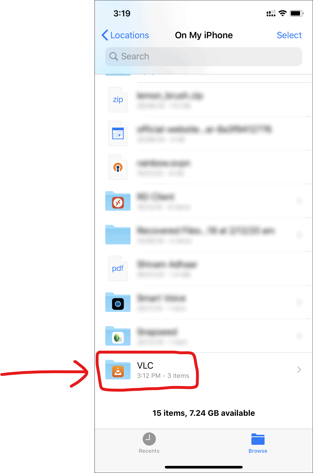 If you need to move or copy the files to some other location on your iPhone, then use the Files app on your iPhone to do so. Find the VLC folder in “On My iPhone” location in the Files app.