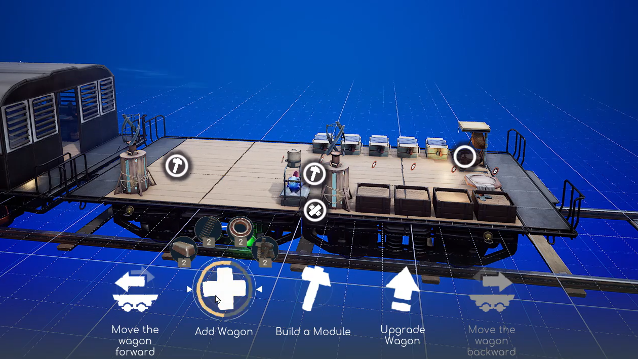 | 3. Build walls | At a depot, use the train building station to place wagon sides on each wagon you want to armor. | Visible solid sides along your wagon edges. |