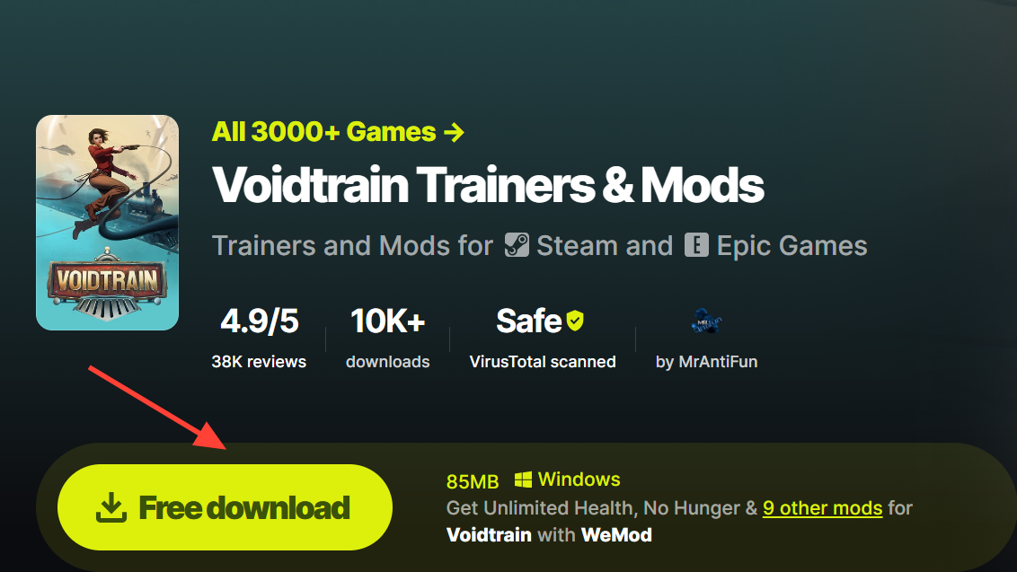 Download page: WeMod’s Voidtrain trainers.