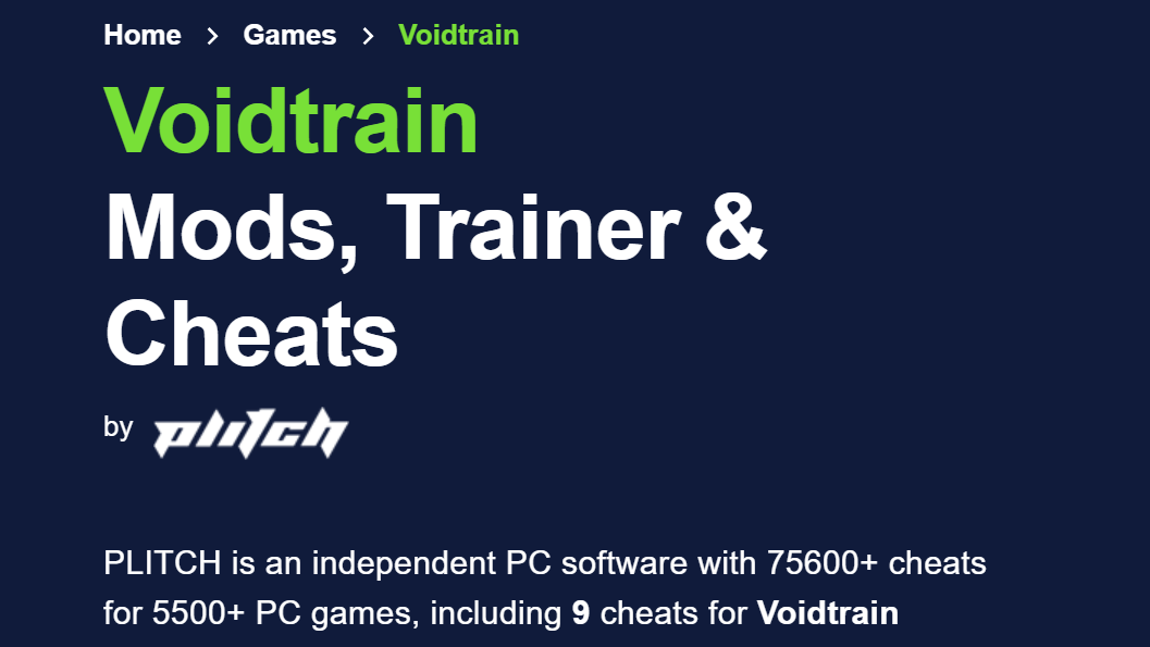 Download page: Cheat Happens’ Voidtrain trainer.