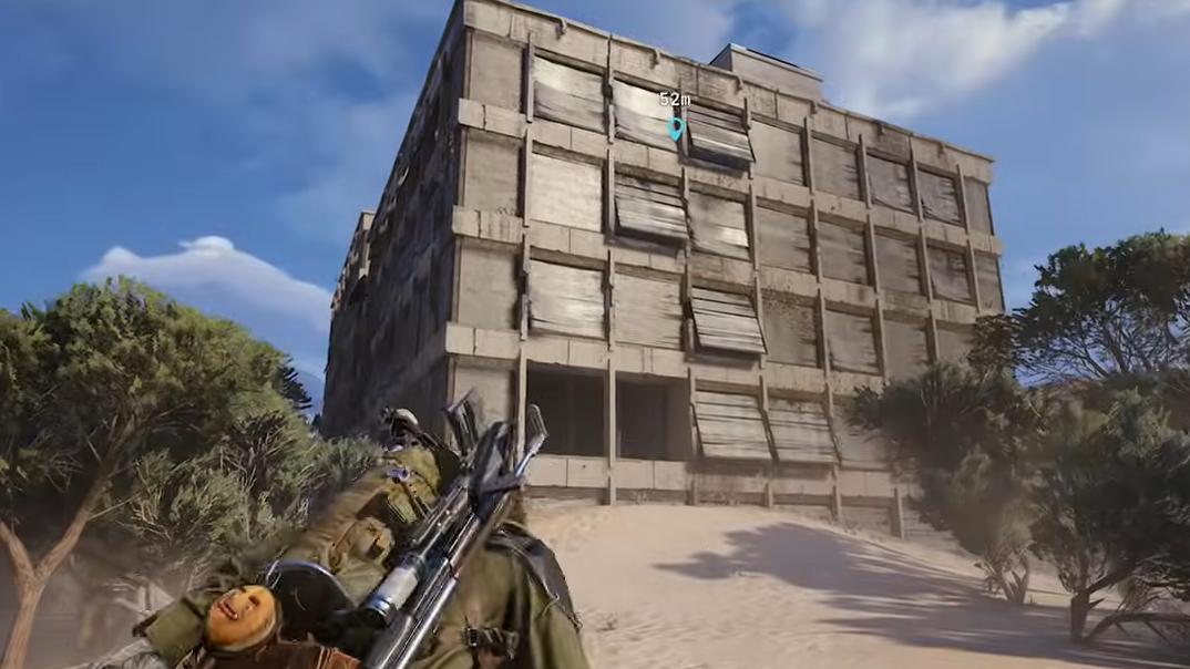 Step 1: Head to the Grandioso Apartments on the western side of the Buried City map. Take the inner zipline up the lift shaft, cross between the buildings, and climb the stairs to the rooftop. Look for soil-filled orange terracotta plant pots with a yellow interaction icon. Interact with one and pick up the Fertilizer that drops.