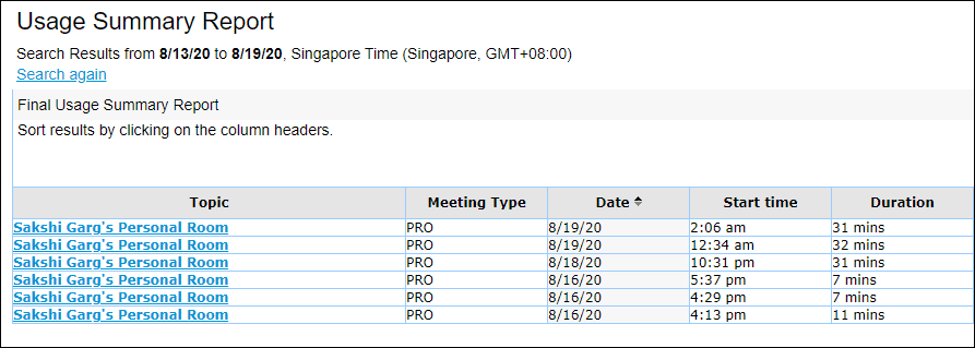Enter the time period you want to view the reports for and select the meeting to open the report.