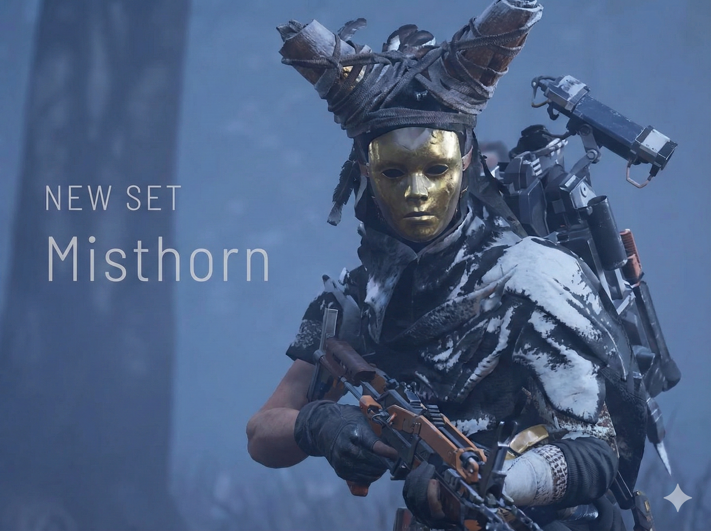 Misthorn leans hard into cult horror rather than the more grounded scavenger gear that dominated the game’s early cosmetics. The core silhouette has three elements players immediately noticed:
