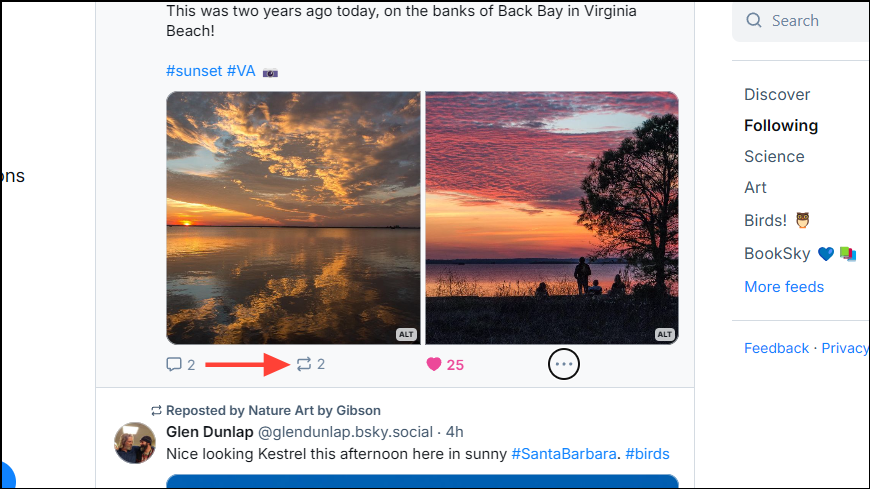 On the right of the Following feed, you will see different feeds based on your interests, such as Science, Art, Music, etc.