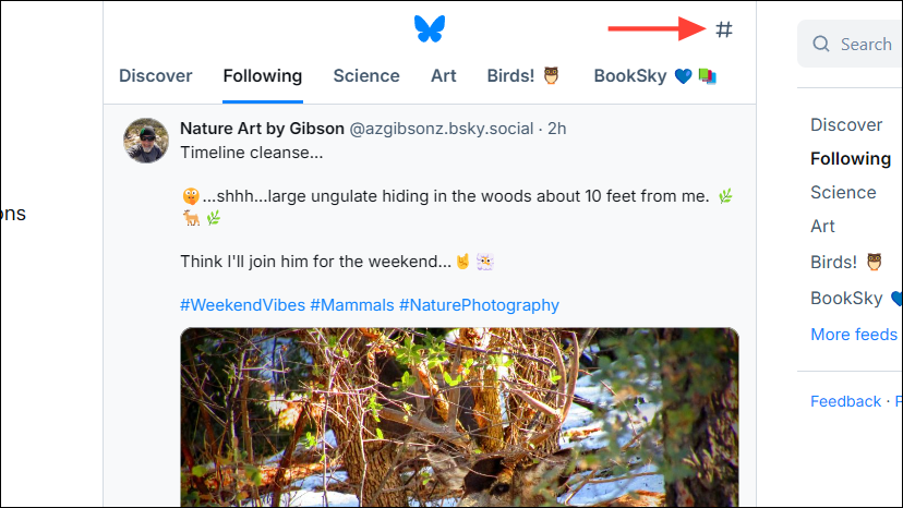 - When you create posts on Bluesky, you can use hashtags to make them discoverable in topic-based feeds.