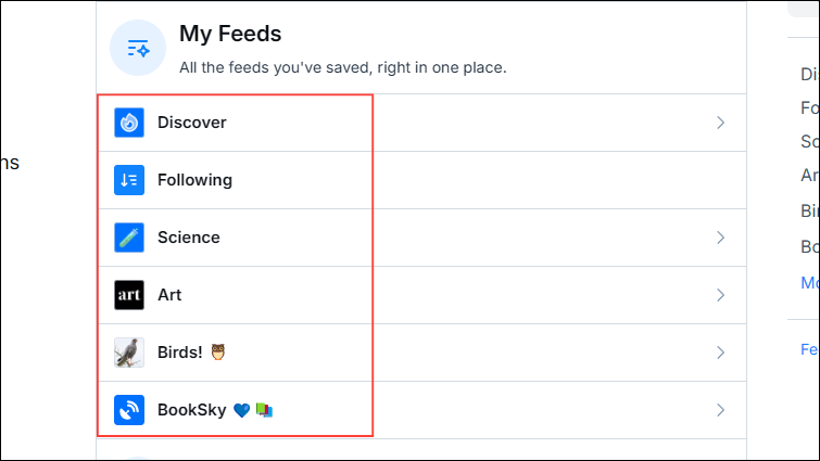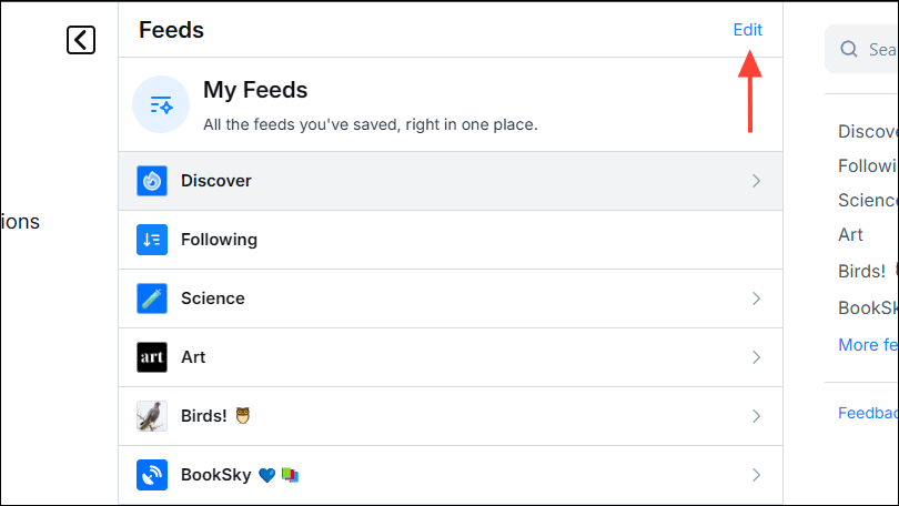 - To manage all your feeds on Bluesky, click on the hash icon at the top.