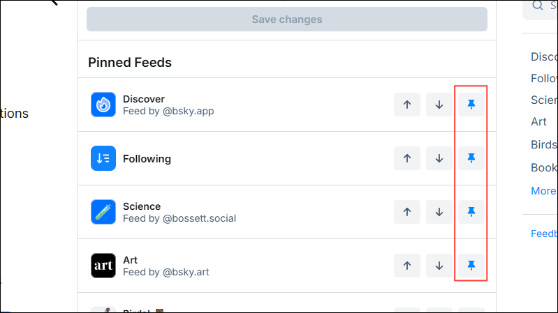 - You can also unpin and pin feeds by clicking on the pin icon on the right.