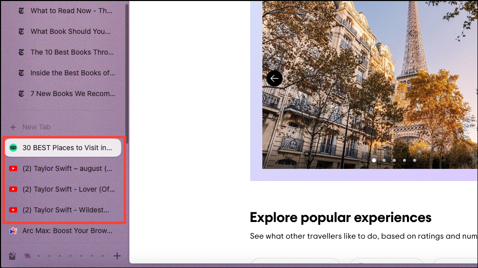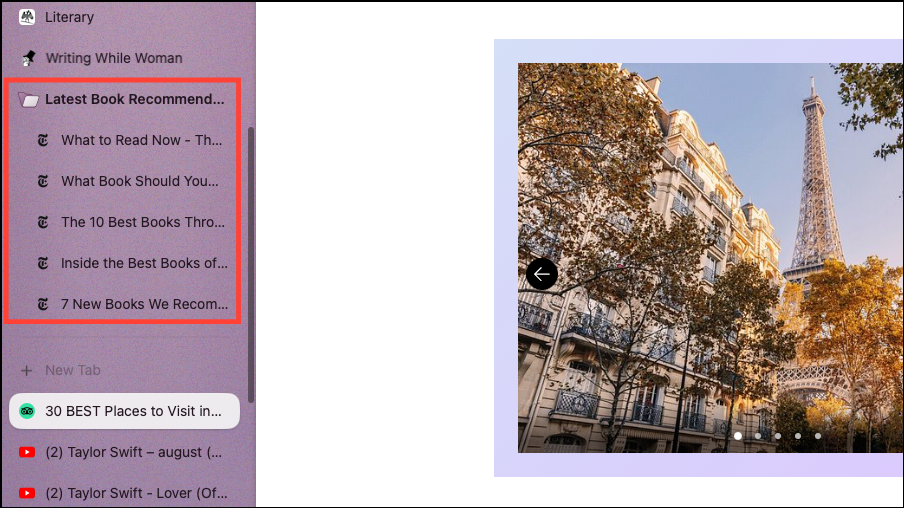 folder of latest book recommendations from The New York Times, pressShift+Enter, and Arc will automatically create a folder in your pinned tabs with 5 different links.