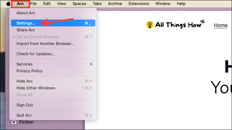 - To enable Instant Links, click on 'Arc' from the menu bar and select 'Settings' from the menu. Alternatively, use the