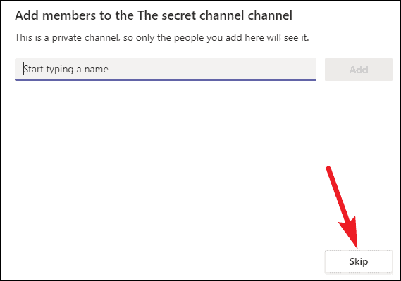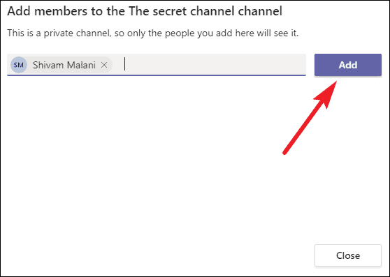 Then, start typing the names of the members you want to add to the channel and click the ‘Add’ button.