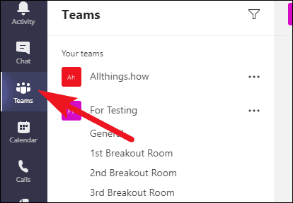 Now that you’ve decided that a private channel is what you need, creating it is a piece of cake. Open Microsoft Teams, and go to ‘Teams’ from the navigation bar on the left.