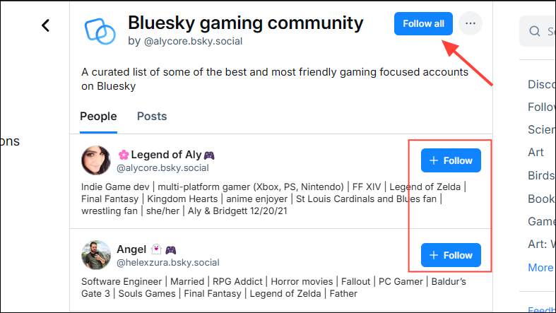 - This will take you to the starter pack page. Click on the 'Follow all' button to follow all the accounts in that pack or you can individually click on the 'Follow' buttons for specific accounts you wish to follow.