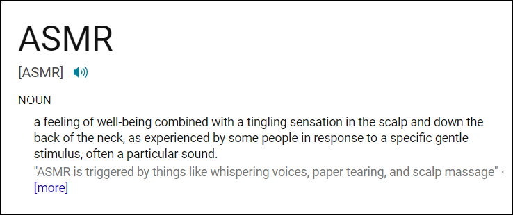 This response is characterized by skin tingling that is typically felt from the back or the top of the head to the bottom of the spine. Sometimes, ASMR (Autonomous Sensory Meridian Responses) tends to only stay in the head and not travel too far down the spine. Nevertheless, it’s a pleasurable experience — with or without the tingles.