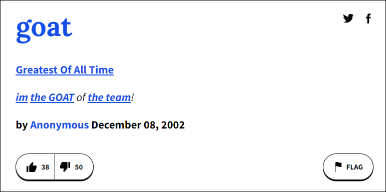 An anonymous entry in the Urban Dictionary dating back to 2002 seems to be the earliest internet reference to GOAT as an acronym. Different people had and still have different theories of what a ‘goat’ in slang should be. But, currently, the universal understanding of GOAT is that of a proud title.