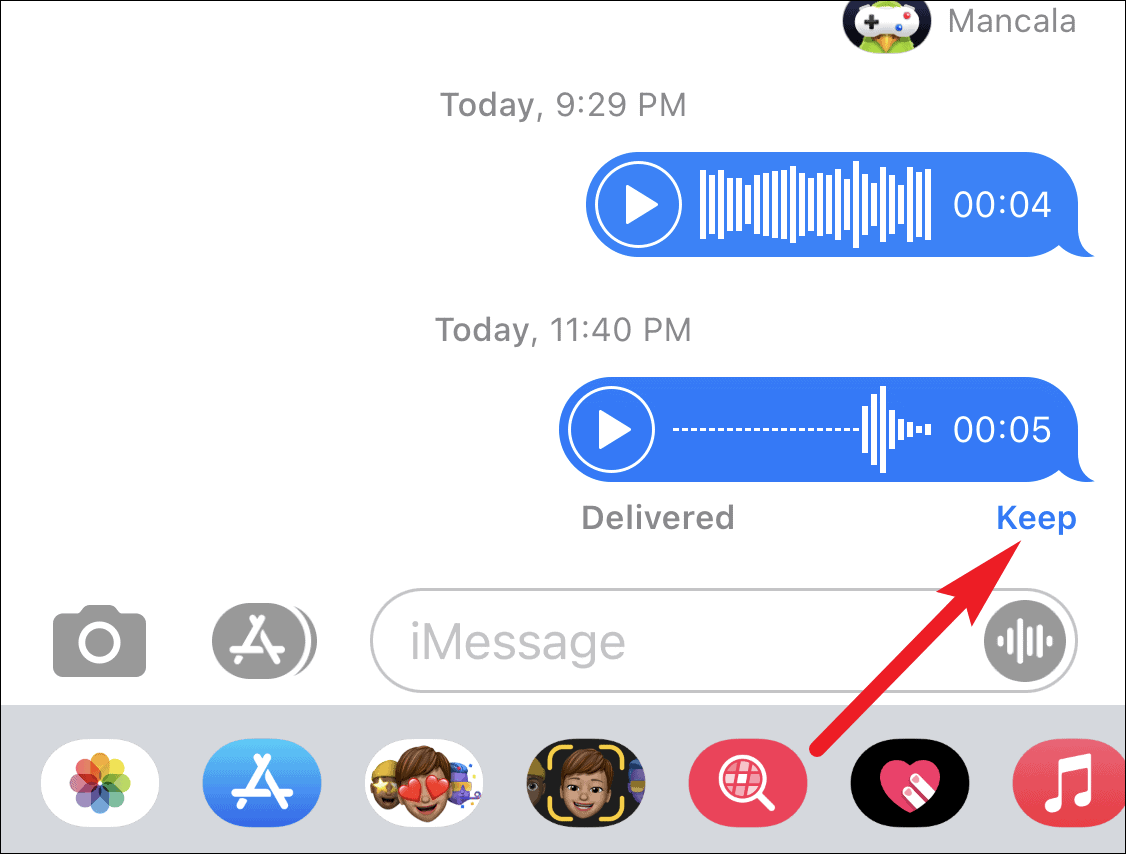 - Tap the Keep option beneath the voice message.