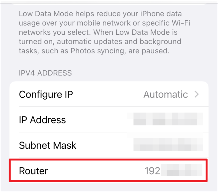 Scroll down until you find the option for ‘Router’ and use the IP address next to it to access router settings.