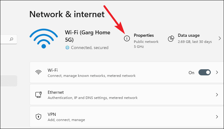 If you have a Windows system connected to the same network, open the Windows Settings app and go to ‘Network and Internet’ from the navigation pane on the left.