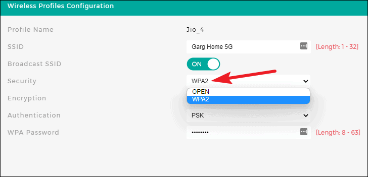 Then, edit the Security settings and change from WPA/WPA2 with TKIP encryption to WPA2 with AES encryption or WPA3 if your router supports it.