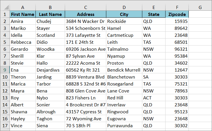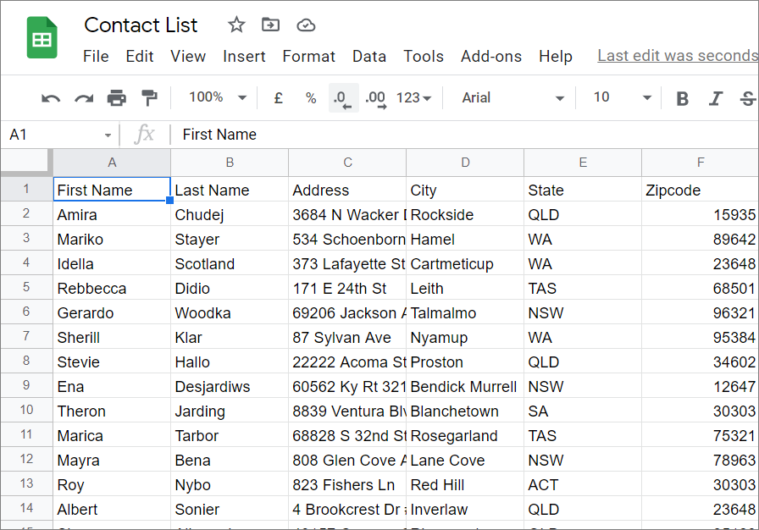 Then, enter your data into the spreadsheet in the appropriate columns. There should be only one record in a row.