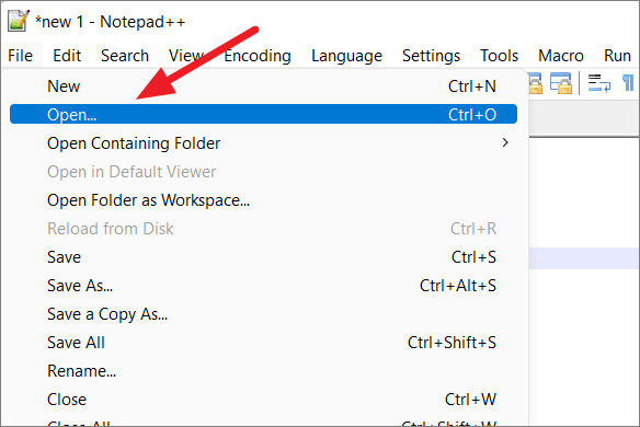 You can also open the text editor of your choice, then click ‘File’ and then ‘Open’ option.