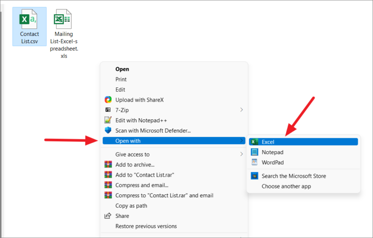 If you have Microsoft Excel installed on your computer, then it will be the default program to open the ‘.csv’ files. Simply double-clicking the CSV file will open it in Excel. If it doesn’t open in Excel, you can right-click the CSV file and choose ‘Open With’, and select ‘Excel’.