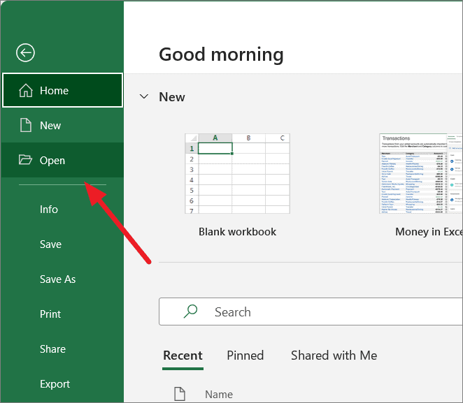 Alternatively, if you already have Excel open, click on the ‘File’ tab and then click ‘Open’.
