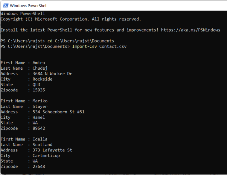 You can also view and read an existing CSV file in Windows PowerShell using the Import-CSV cmdlet. Here’s how:
