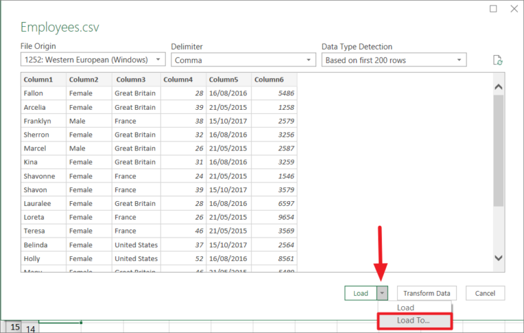 In the next window, click the drop-down arrow next to the ‘Load’ button and select the ‘Load To’ option.