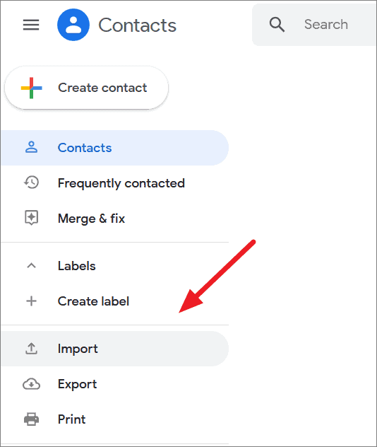 On the Google Contacts page, click the ‘Import’ button on the navigation panel.