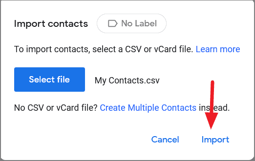 Google only accepts the ‘.CSV’ file or the ‘Vcard’ file for importing the contact list into Google Contacts. If you want to import a contact list from a CSV file into Google Contacts, follow these steps: