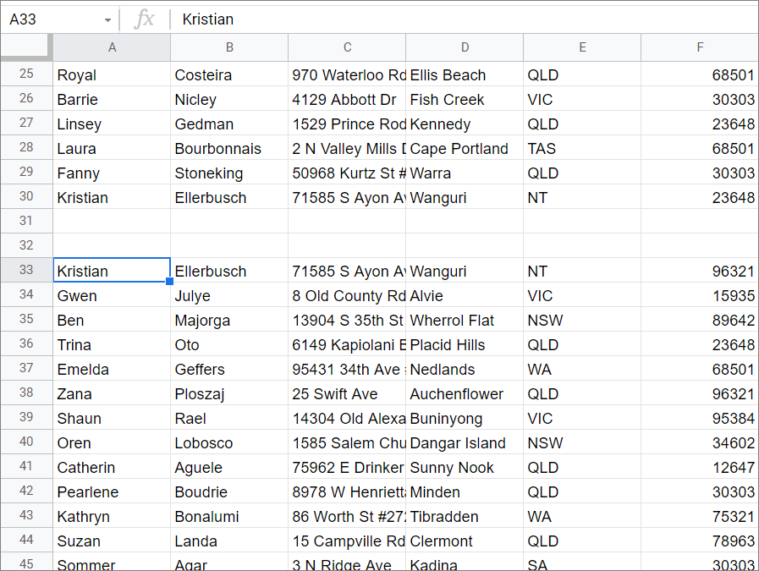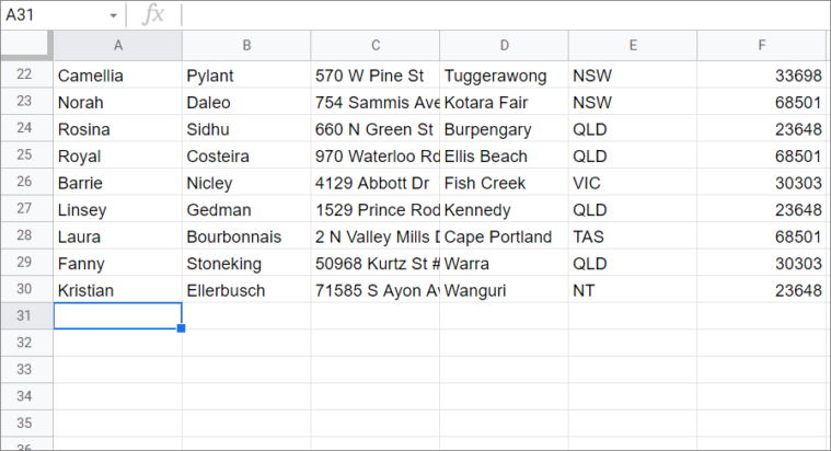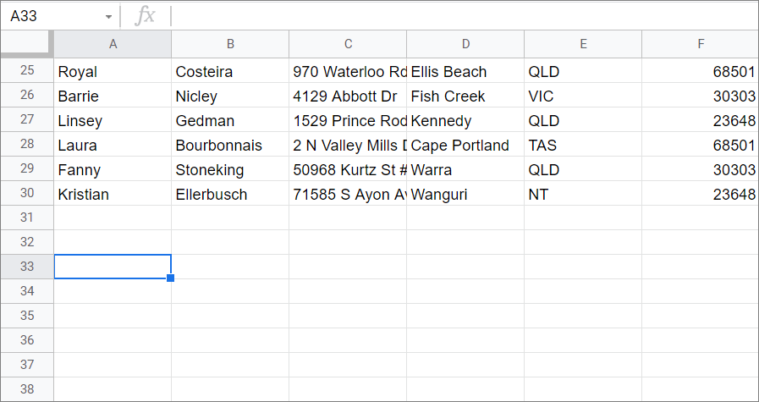 This will append the CSV file data to the end of the current sheet’s data set as shown below.