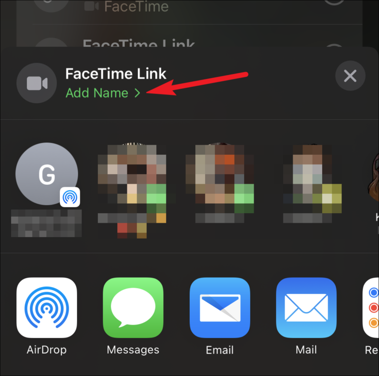 Few options will appear from the bottom of the screen. You can also edit the name of this link. Tap the ‘Add Name’ option from the interface to give your call a personalized name. This is the only time you can edit the name of the link, otherwise, it’ll be ‘FaceTime Link’ forevermore until you delete it and create a new one.