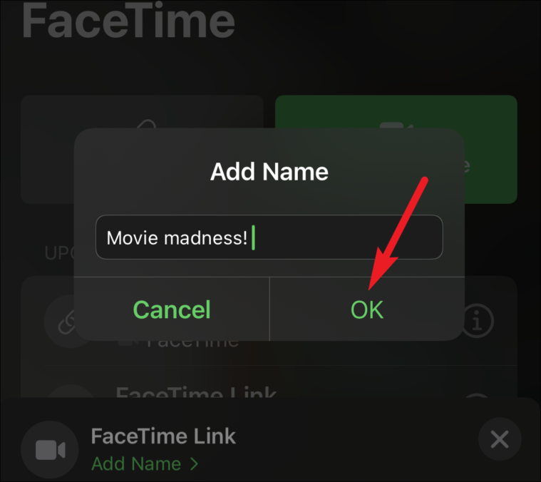 Enter any name for the link and tap ‘OK’.