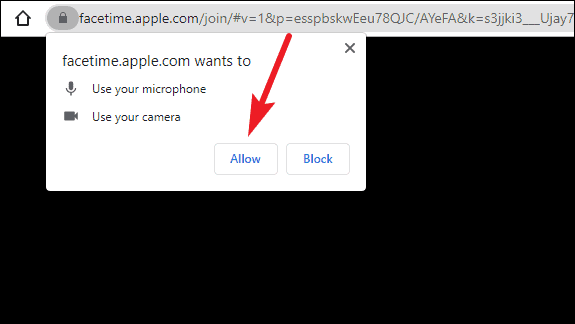 When using FaceTime on the browser for the first time, a prompt will appear that FaceTime wants to access your camera and microphone. Click ‘Allow’.