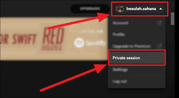 The shortcut. Tap your username to the top right of your Spotify window and select ‘Private session’ to tick it, thus select it.