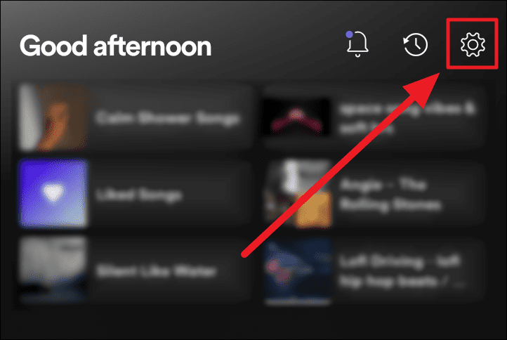 Disable sharing your listening activity on your phone. Tap the ‘Settings’ icon (gear icon) to the top right corner of your Spotify screen.