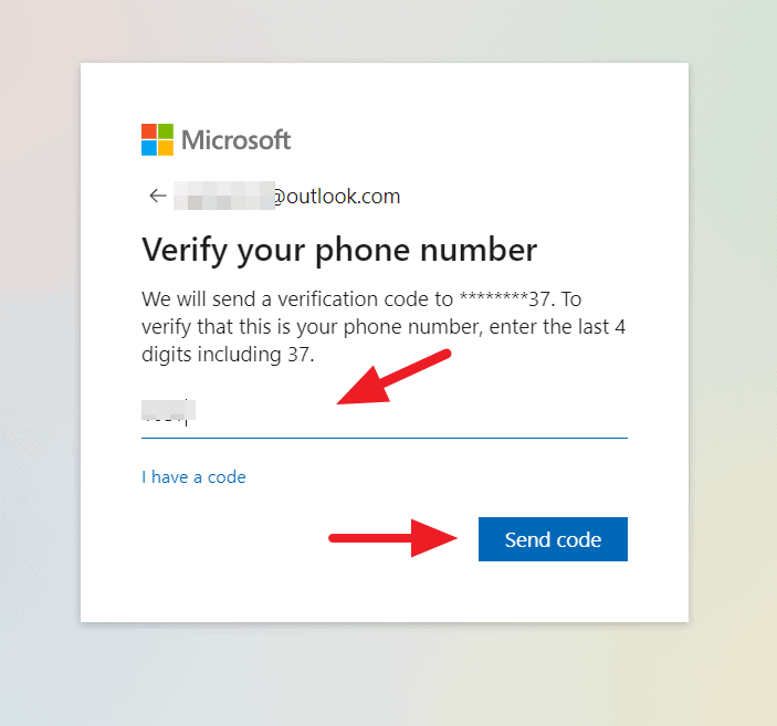 Step 5: Enter the last four digits of your phone number, click 'Send code', then enter the received code to verify.