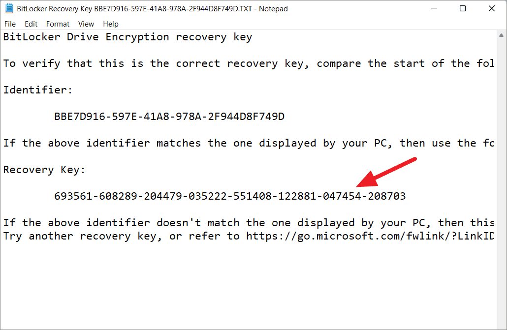 Step 3: Once you find the file, open it to view the recovery key.