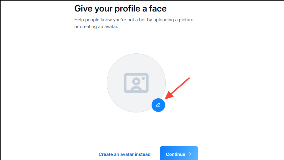 - You will then have to complete the captcha challenge before you can upload a profile picture. To upload a picture, click on the pencil icon. Alternatively, you can create an avatar instead of uploading a profile picture.