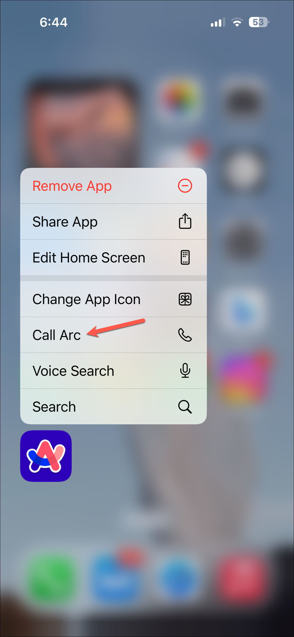 - You can tap and hold the 'Arc Search' icon from your Home Screen and select 'Call Arc' from the options that appear.