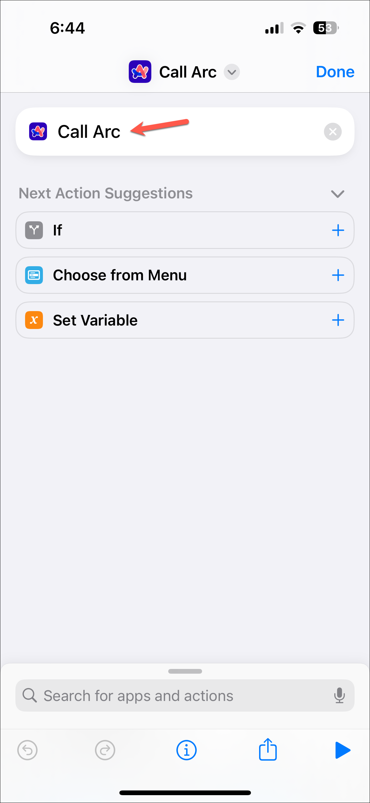 - You can also create a simple shortcut in the Shortcuts app on iPhone to trigger Call Arc and run it using Siri or assign it to Back Tap.