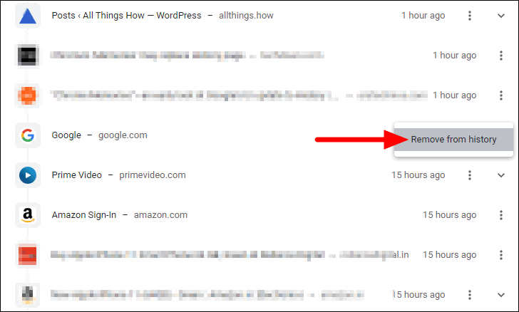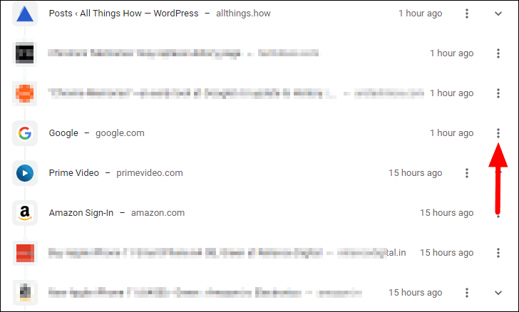 To delete an entry from Memories in Chrome, click on the ellipsis next to the entry you want to delete.