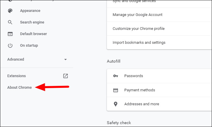 Next, click on ‘About Chrome’ from the options listed on the left.