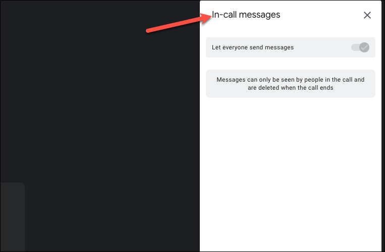 Providing access to in-meeting chat is one of the main purposes of Companion mode, especially when being used by individuals in a conference room. The in-call messages panel will open automatically on the right when you join in Companion mode.