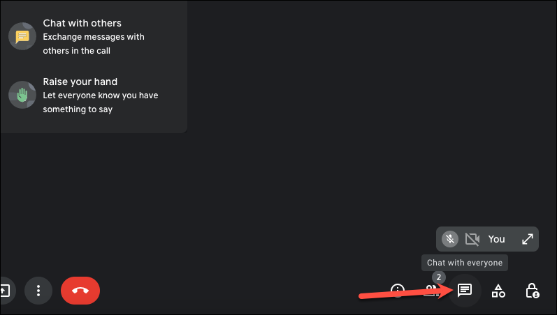 If you close the meeting panel, you can access it anytime again by clicking the ‘Chat’ icon at the bottom right.